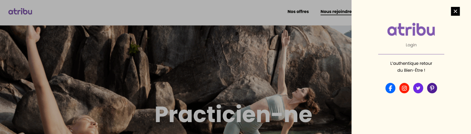 1 - Passe du site internet à la plate-forme 2 - Clique sur Login 3 - Utilise les codes d’accès créent lors de ton enregistrement pour accéder à la plateforme 4 - Clique en bas à gauche sur ton nom puis sur “Profile